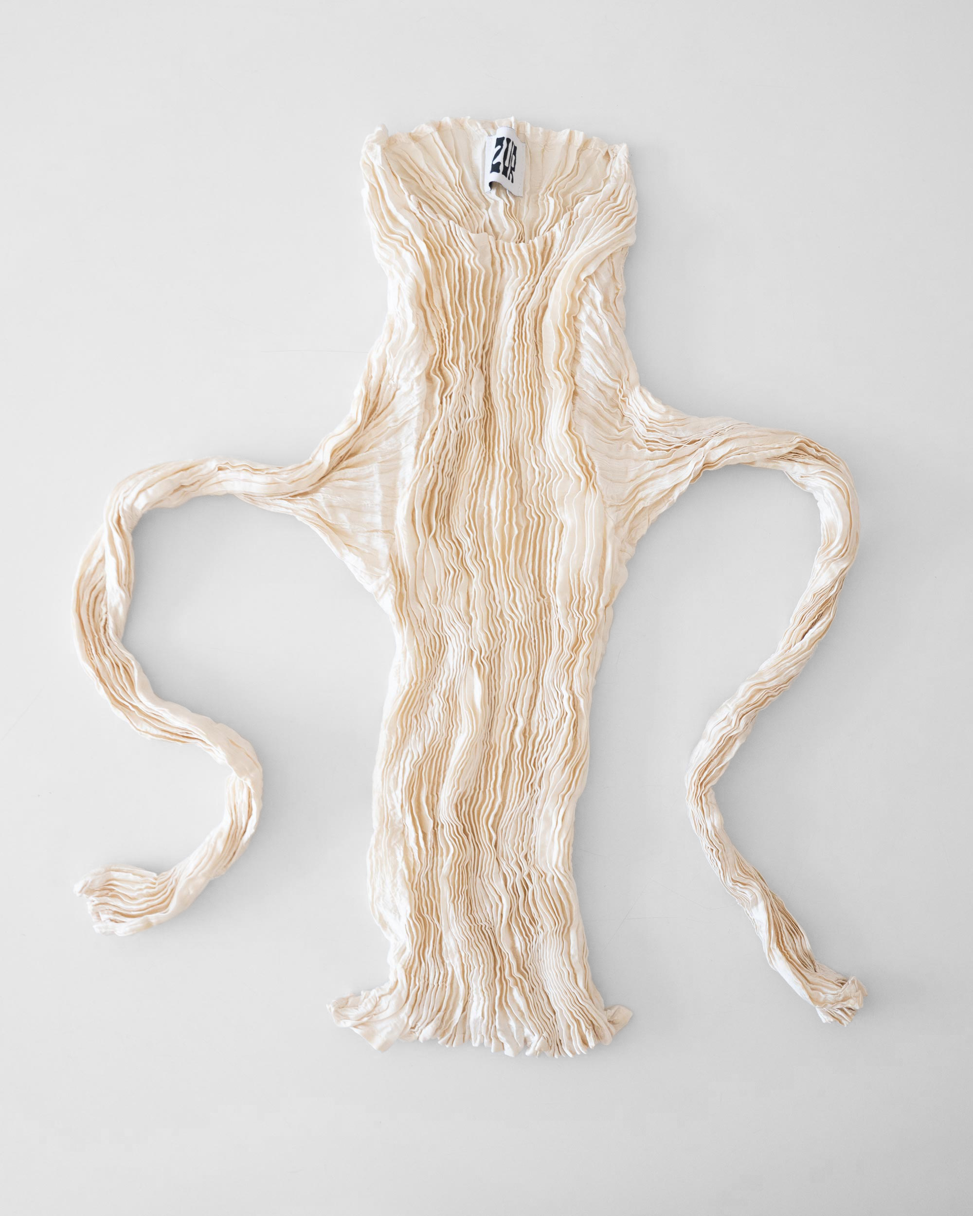 OFF-WHITE PLISSÉ SATIN SILK SLEEVE TOP