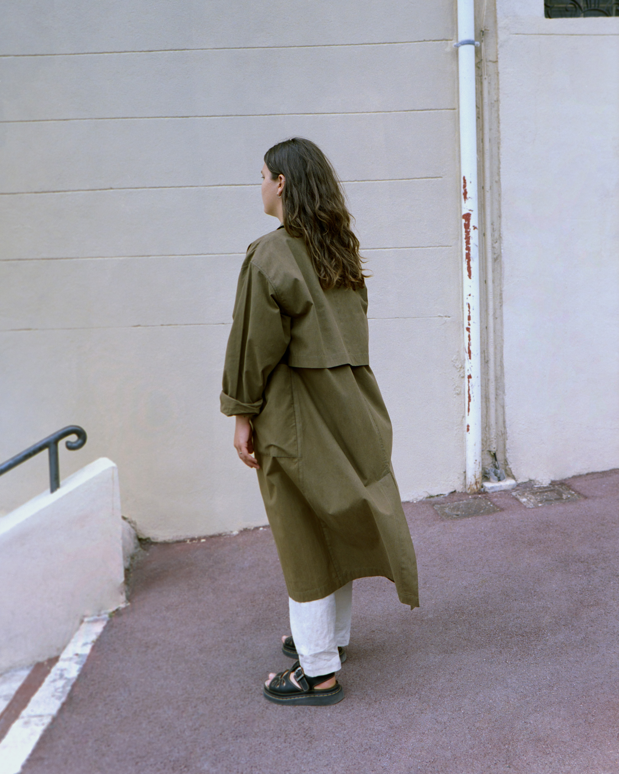 Unisex cotton-linen coat, with a double front patch pocket and a concealed button placket with five corozo nut buttons. Naturally hand-dyed with St.- John’s Wort.