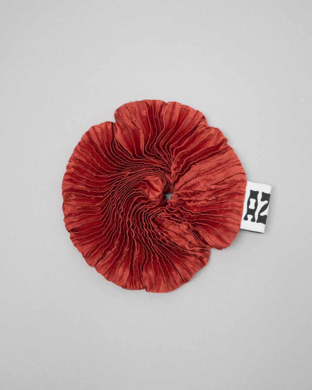 Plissé matt silk scrunchie with the “AZUR” label.
