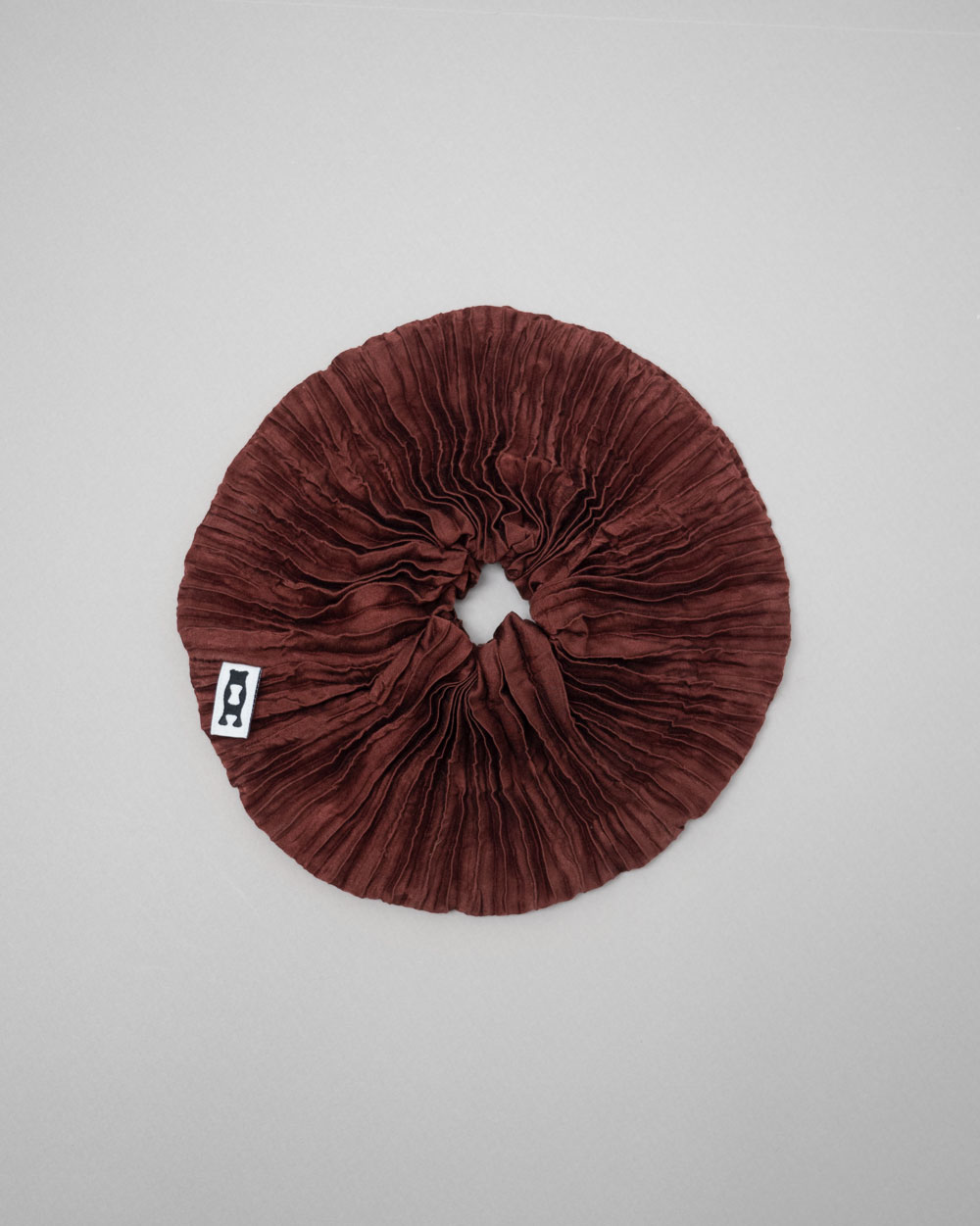 This scrunchie features flatter pleats and is bigger than our standards.