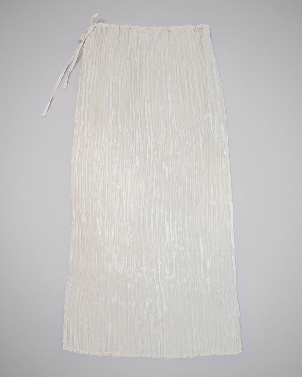 Plissé satin silk long skirt with a drawstring at waistband. Loose pleats that give the skirt fluidity.