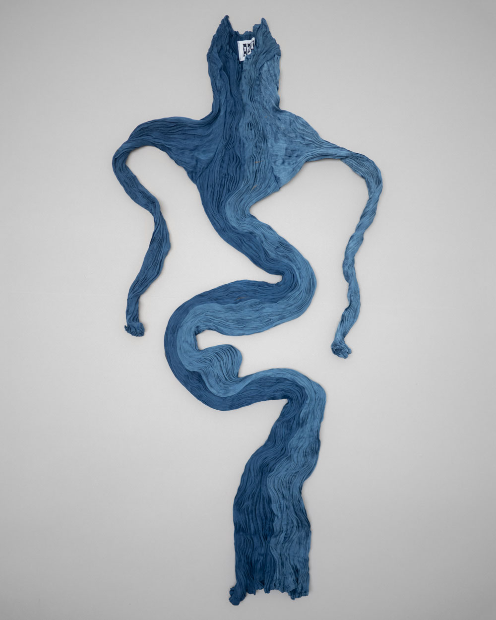 This scrunchie features wider pleats than our current standards. As our pleating technique has evolved, this style no longer aligns with the quality of the pieces available on our website today. This scrunchie, naturally dyed with indigo, tends to bleed more than our usual indigo pieces. It’s important to avoid contact with light-colored clothing, as it may transfer dye. Additionally, hands and skin may also have a blue tint after wearing it.