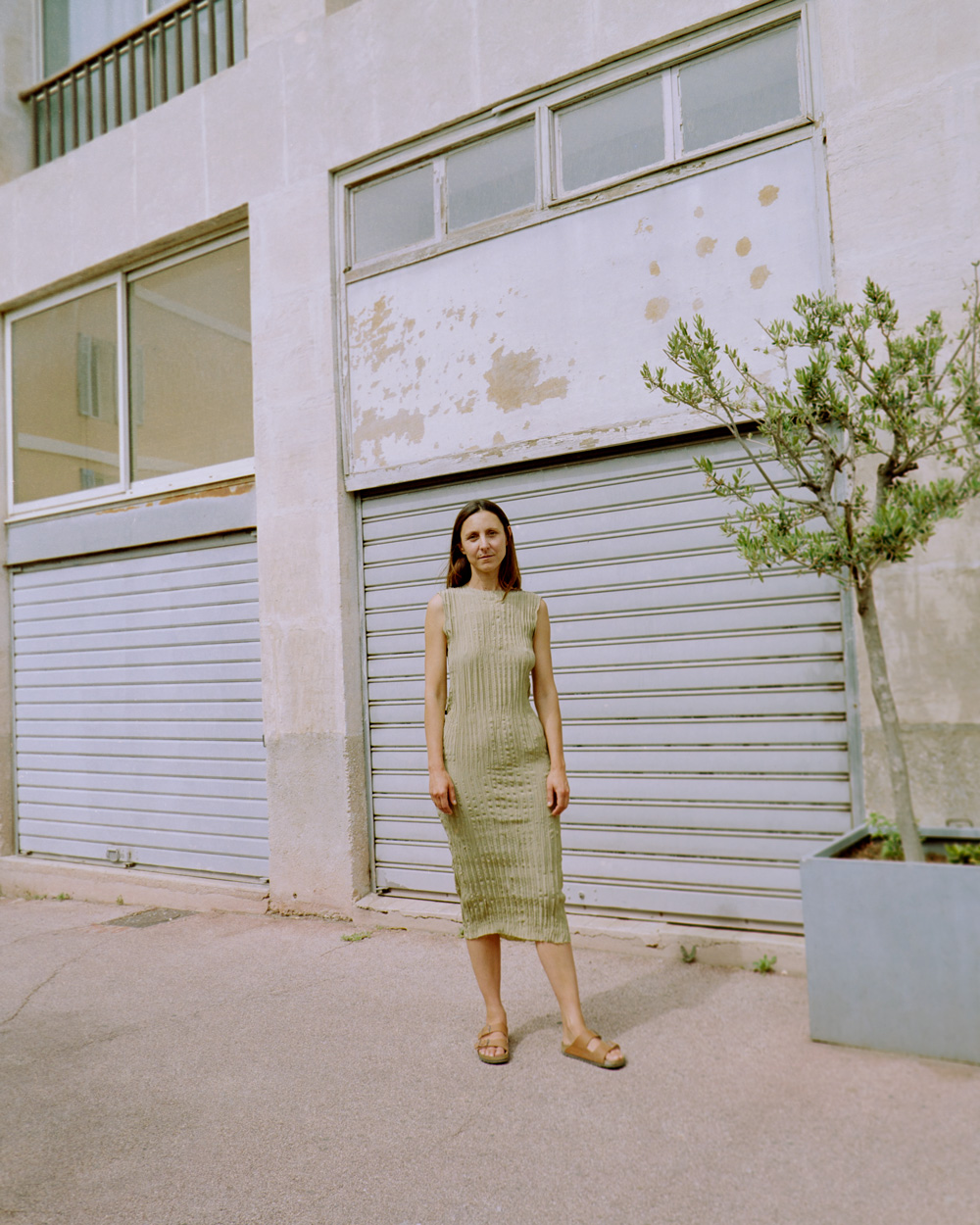 Designed, cut, sewn, naturally hand dyed with plants and hand pleated in Marseille, France.
